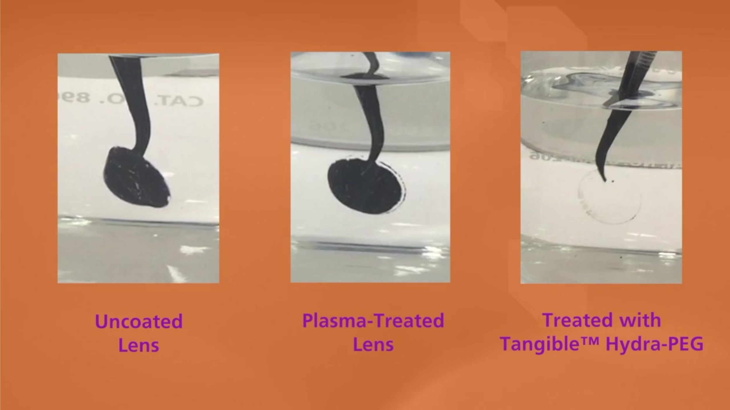 Tangible Hydra-PEG works by encapsulating your lenses with a thin, hydrophilic layer. This layer mimics the natural ocular mucin, creating a more stable and comfortable lens surface.