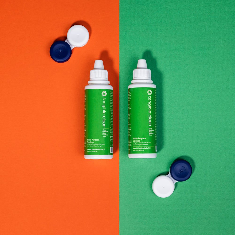 Tangible Clean can be used to clean, disinfect, condition, rinse, and store your lenses.